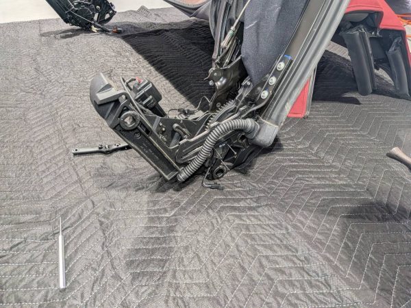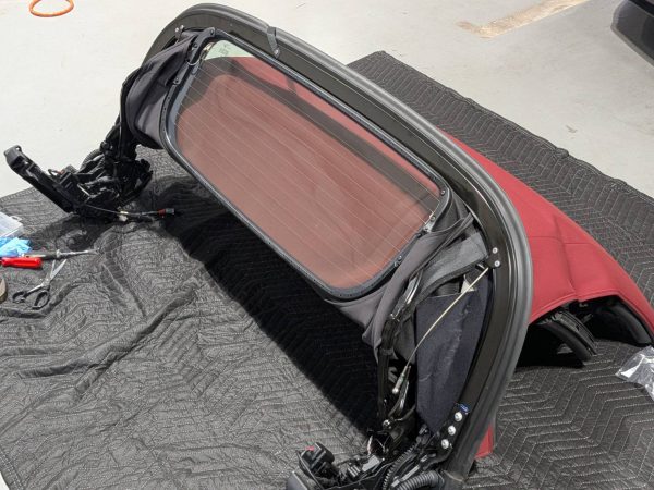 車上での交換は不可能なため、コンバーチブルトップを車両から外します。