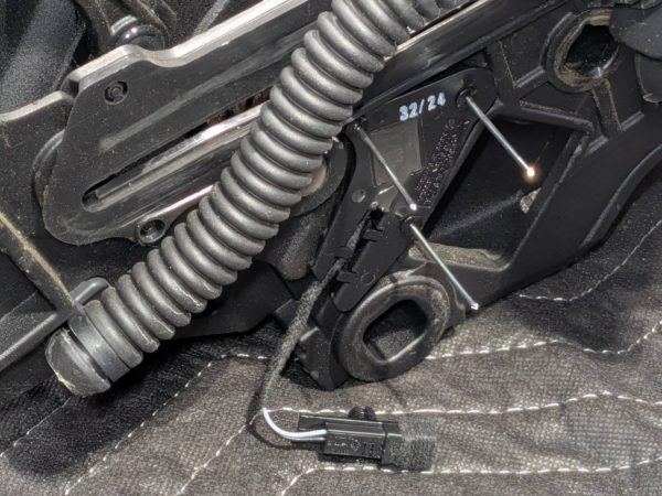 コンバーチブルトップの根本に付いている新品マイクロスイッチに付属しているリベットで取り付け交換します。
