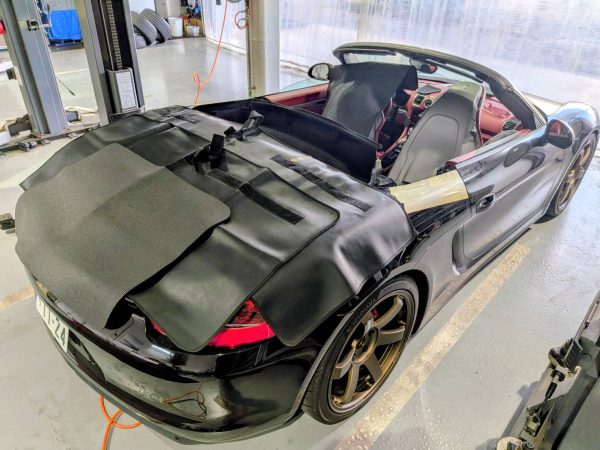 981ボクスターの幌オープン時のボデーへの干渉リペア!