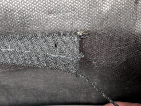 反対に紐部分はほつれていなかったからと、接着だけ行っても引っ張りへの反力が大きくなるので、いずれ紐部位が切れてしまいます。