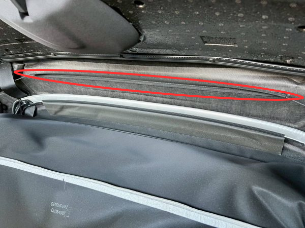赤楕円の左右にわずかに見えている【紐】で、幌オープン時に幌が折りたたむように引っ張ています。